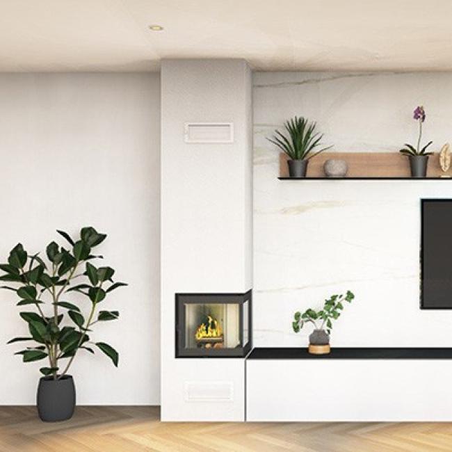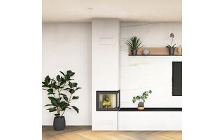 Kamin IMAG LITE beta S - L/D s kaminskim vložkom s kotno zasteklitvijo (levo ali desno) v velikosti 46,1 x 43 x 37,3 cm in krilnim odpiranjem.