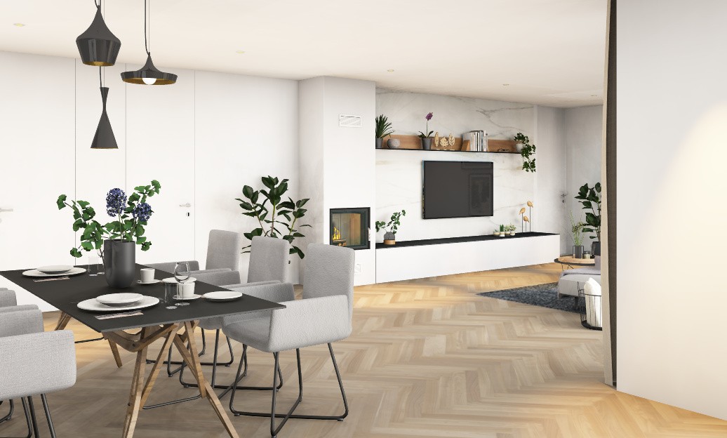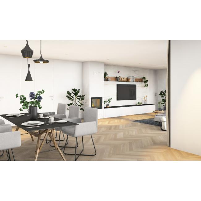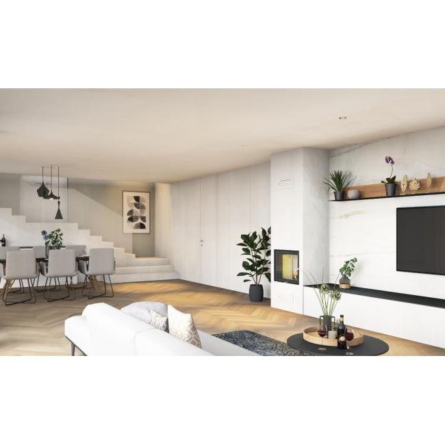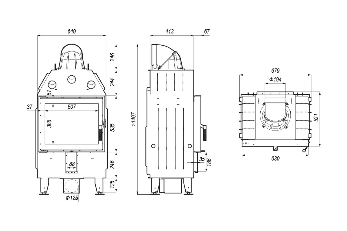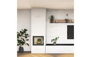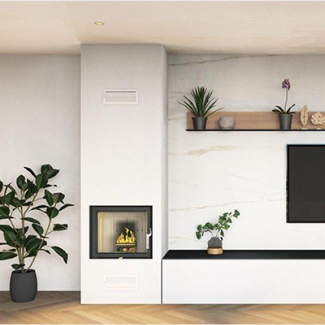Kamin IMAG LITE M s kaminskim vložkom z ravno zasteklitvijo v velikosti 58 x 50 cm in krilnim odpiranjem.