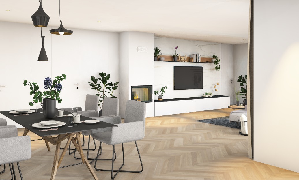 Kamin IMAG LITE s kaminskim vložkom z ravno zasteklitvijo v velikosti 75 x 50 cm in krilnim odpiranjem.