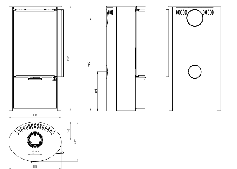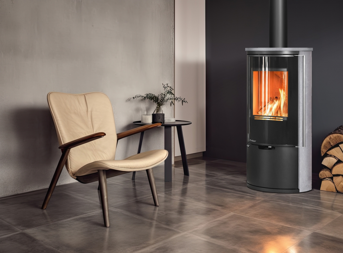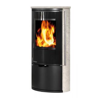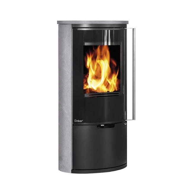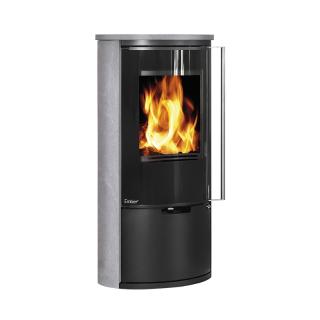 E14 VG* je moderna verzija samostoječe kaminske peči ovalne oblike, lahko je črna (kovina) ali pa z dodatkom serpentina ali apenenca ob straneh.