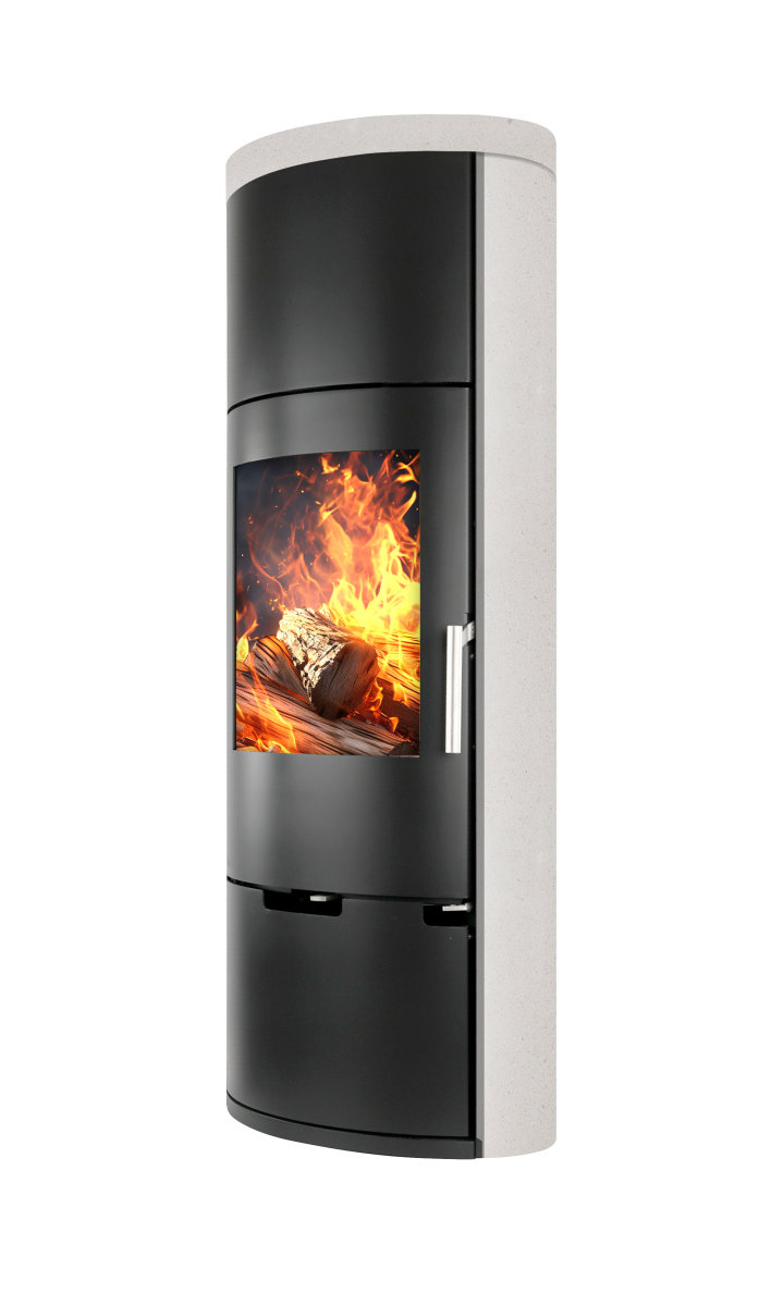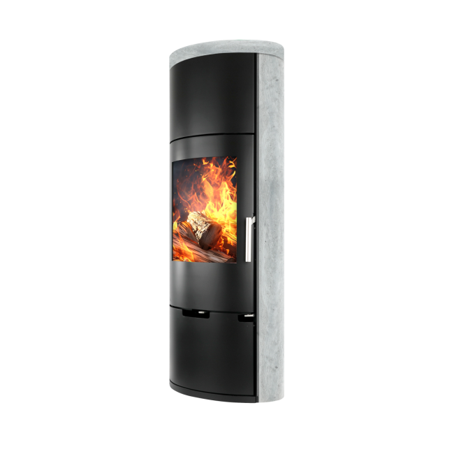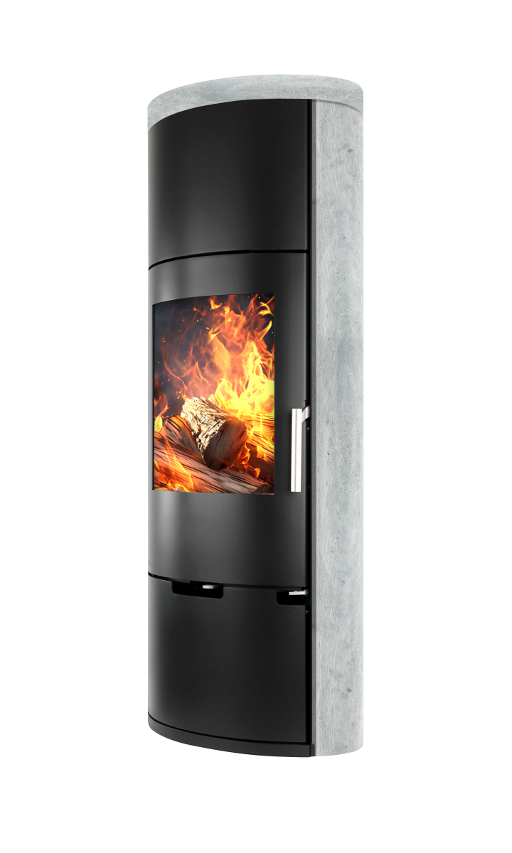 E11 je samostoječa kaminska peč ovalne oblike, lahko je črna (kovina) ali pa z dodatkom serpentina ali apenenca ob straneh.