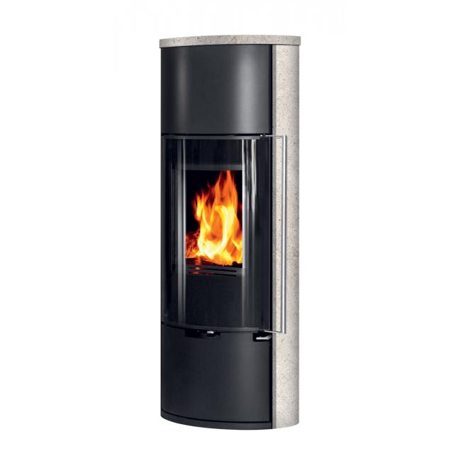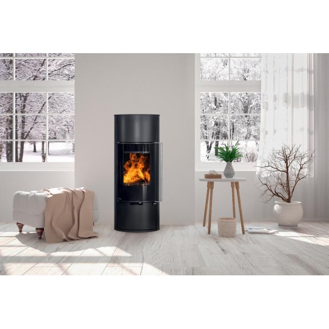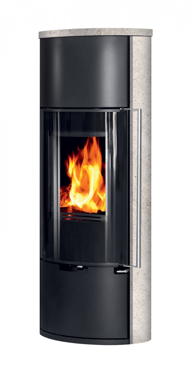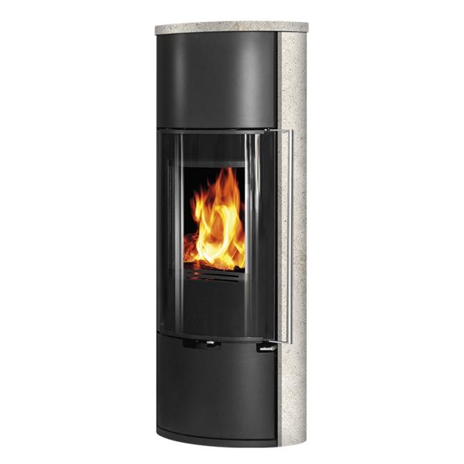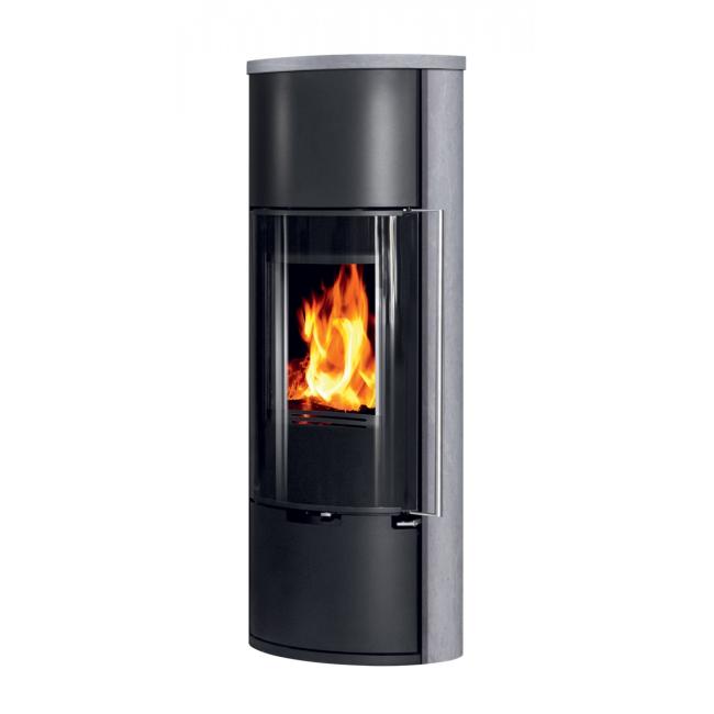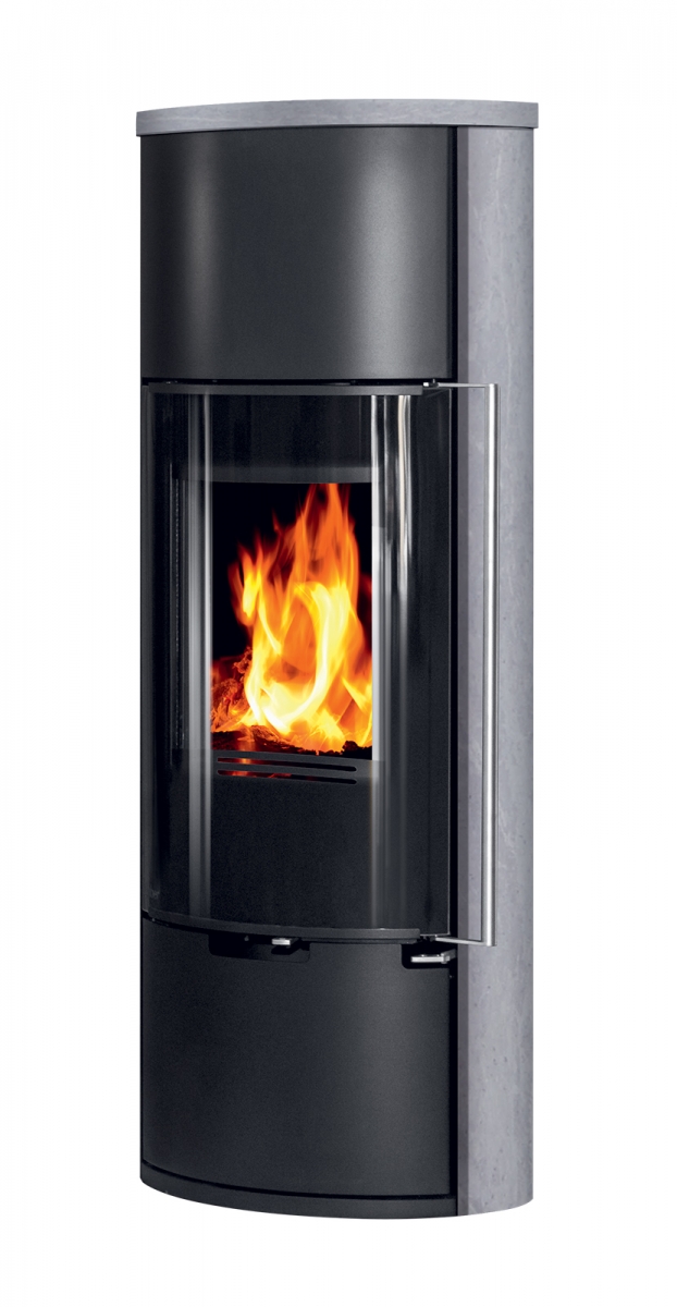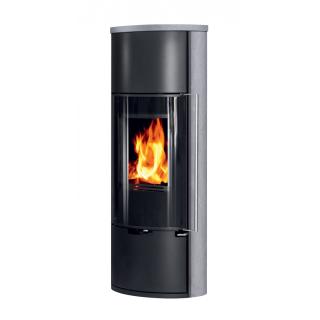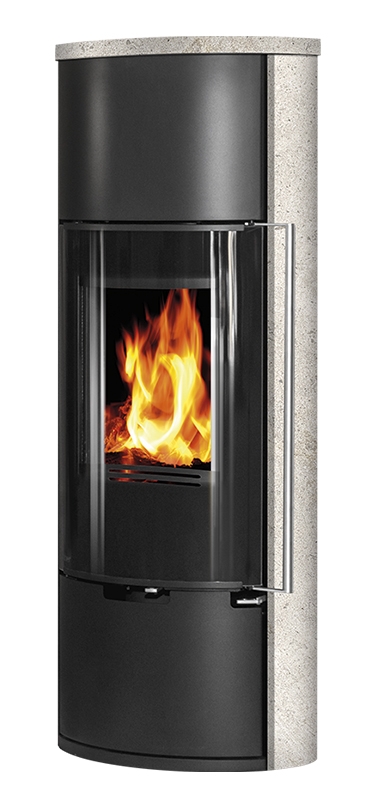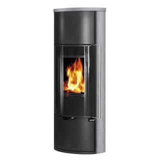 E11 VG* je moderna verzija* samostoječe kaminske peči ovalne oblike, lahko je črna (kovina) ali pa z dodatkom serpentina ali apenenca ob straneh.